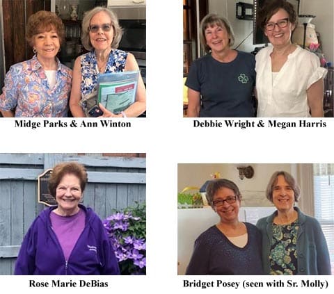 Debbie Wright and Megan Harris. As a retired construction project manager, Debbie brings invaluable insight for WVIS campus needs. Megan, a former chemical engineer and HR manager, assists Sr. Mary Irene Sorber, SC, in many ways including music preparation, garden expertise, coordination of birthday cards, and managing WVIS book collections.